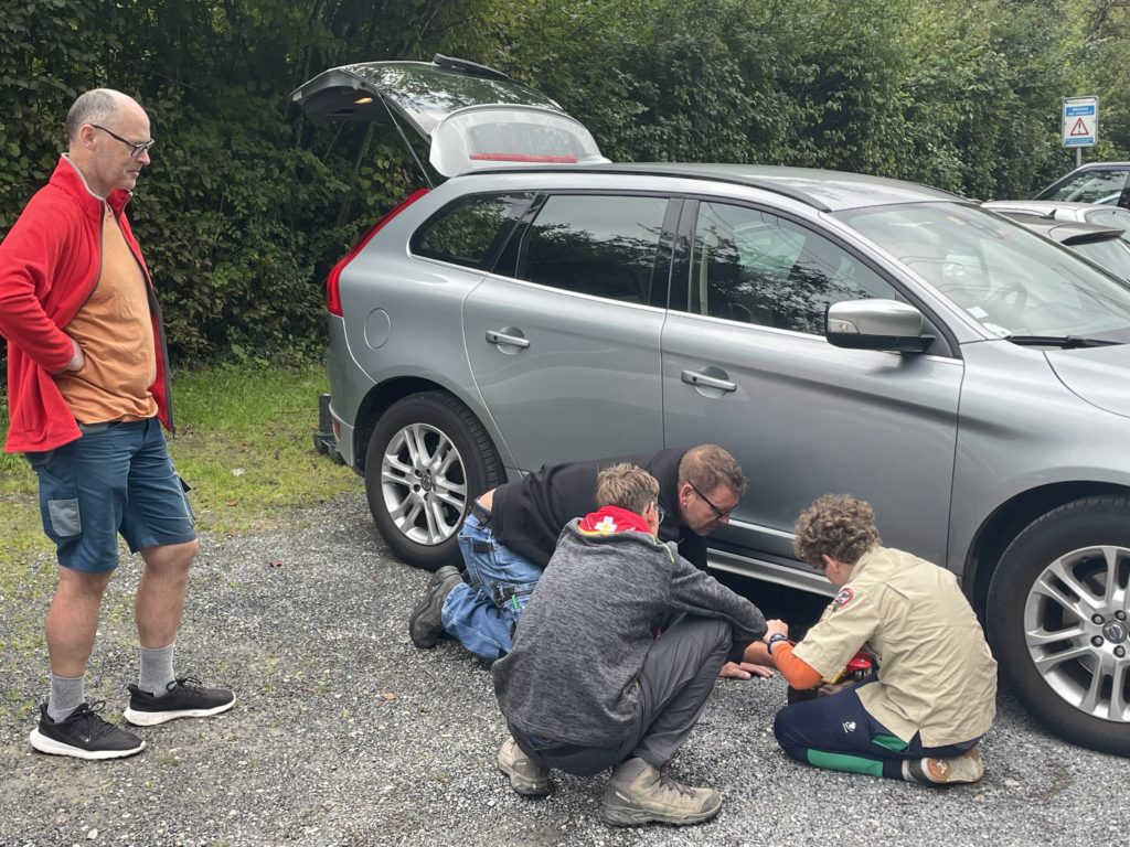 Scouts Operating a Car Jack